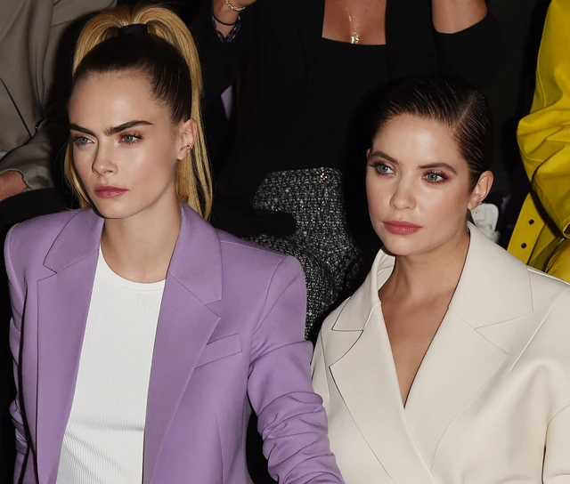 Ashley és Cara is nagyon sikkes volt a divatbemutatón: Ashley Benson egy hosszú, törtfehér kabátot viselt, Cara Delevingne pedig egy pasztelllila szettben tündökölt. Igazi álompár voltak!