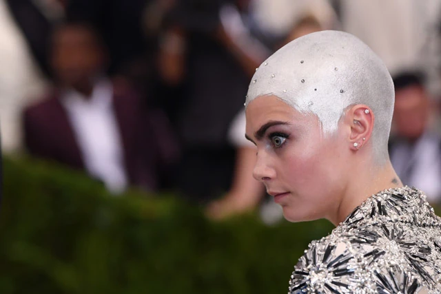 Cara Delevingne ráfestett a kopasz fejére a Met gálán