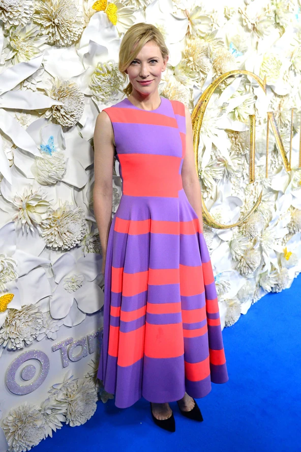 A 45 éves Oscar díjas színésznő ezúttal nem tündét, hanem gonosz mostohát alakít, ami valljuk be igen elképzelhetetlen, hiszen csak rá kell nézni. Mi semmi ördögit nem látunk rajta, főként, hogy férjével most fogadtak örökbe nemrég egy kislányt, így gyerekeik száma immár négy. Nos, Cate Blanchett otthonában, Sydneyben is a mozikba került az új Disney film, ennek bemutatójára pedig egy szuper color blocking ruhában érkezett a szőke sztár. A vibráló levendula és korallszínű Roksanda szettben csodásan fest a színésznő, fiatalos, könnyed és tavaszias. Imádnivaló, akárcsak ő, nem igaz?