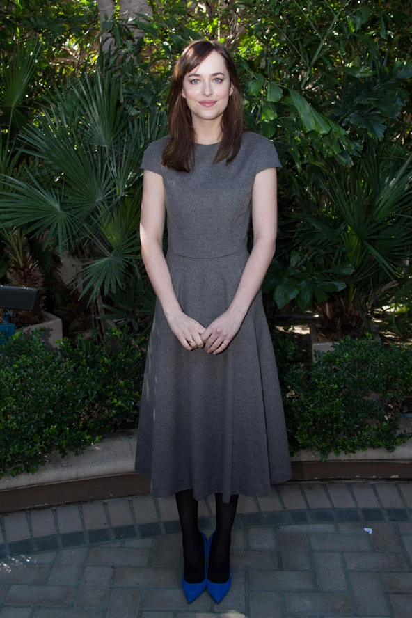 Dakota Johnson kétségtelenül ennek a mozinak köszönheti hírnevét, és valószínűleg ez egy olyan szerep lesz az ő életében is, amit soha nem fog tudni magáról levakarni. A fiatal színésznő karrierje igencsak bevállalós szereppel indul, aminek a Los Angeles-i sajtótájékoztatóján csíphettük el legutóbb. A 25 éves, máris körülrajongott sztár korábban szőke loknikkal hódított, de most már egy ideje visszatért a kellemes, mogyoróbarna tincsekhez inkább, amilyen frizurát Anastasia is visel. Ez az egyszerű, testre simuló, szürke ruha a fekete harisnyával és feltűnő, kékszínű magas sarkúval izgalmas, ugyanakkor visszafogott választás volt részéről. Te várod már a filmet?