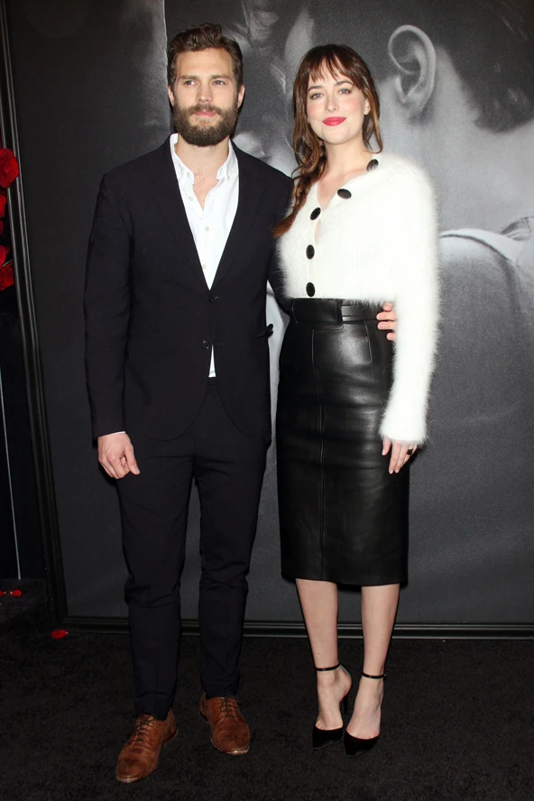 Szerencsére kíváncsiságunkat kicsit csillapíthatjuk azzal, ha legalább a film főszereplőit, Dakota Johnsont és Jamie Dornant látjuk a vörös szőnyegen. A verhetetlen páros New Yorkban állt a vörös szőnyegre, amikor A szürke ötven árnyalatának vetítésén voltak. Nos, reméljük Dakota Johnson alakítása sokkal jobb, mint a stílusérzéke, ugyanis ez a bőr, öves ceruzaszoknyás és hozzá nagygombos, szőrös, fehér pulcsis szett kifejezett ízléstelen. Talán a 80-as években, valahol eldugva megállta volna a helyét, vagy akár a Jégvarázsban is, de a vörös szőnyegen nem igazán. Ám ne legyünk ilyen negatívak, fókuszáljunk a lényegre, hogy már alig várjuk a film érkezését! Te mit szólsz Dakota Johnson összeállításához?