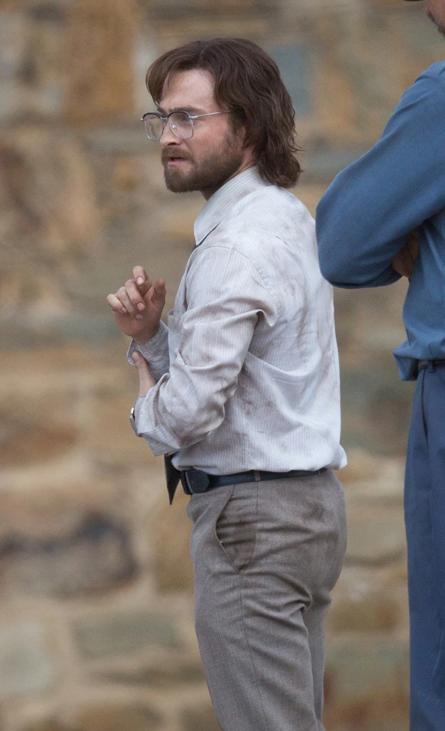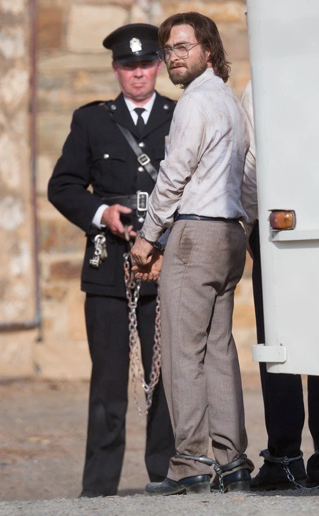Az Escape from Pretoria forgatásán hosszú hajjal, dús arcszőrzettel és óriási szemüvegben láthatjuk. Az összhatáson csak rontott Daniel Radcliffe piszkos ruházata és a jelenet, hogy épp letartóztatják. Persze, tudjuk, hogy ez csak a film egyik jelenete, de minden tiszteletünk a színészé, hogy ehhez a szerephez is így át tudott szellemülni.