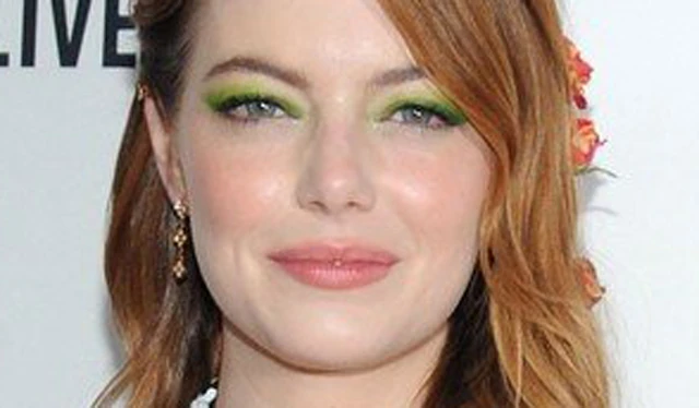 Emma élénk zöld sminket viselt, ami elég vadnak tűnhet, de bőrtónusához mégis illett.
