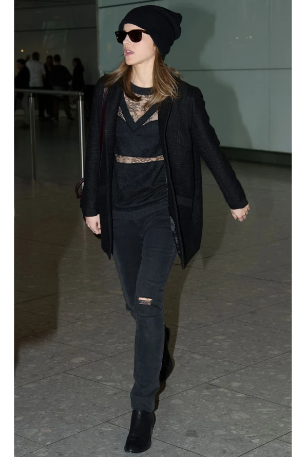 A fiatal színésznő immár igazi stílusikon lett, de most a Noé kapcsán megint színésznői kvalitásai kerültek a figyelem középpontjába. No, és persze ilyenkor azért mindig megmutatja a bemutatókon, hogy miért is számít már ilyen fiatalon stílusikonnak. Emma Watson a vörös szőnyegen ellenállhatatlan, a magánéletben viszont éppen olyan, mint bármelyik hozzá hasonló fiatal. Talán ezt is szeretjük benne a legjobban. Most például a repülőtéren kapták lencsevégre egy kicsit topisan. Szűk, szakadt farmert, csipkebetétes felsőt és fekete kabátot viselt. Nem túl vidám szett az egyszer biztos, a sapka és a napszemüveg valószínűleg csak a rejtőzködés miatt van rajta, de nyilván ettől lesz egyből feltűnő. Neked hogy tetszik Emma Watson reptéri szettje?