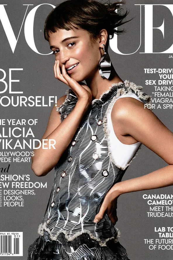 Két éve mutatta meg magát a nemzetközi porondon és azóta lépésről-lépésre halad a ranglétrán felfelé. Idén olyan filmekben láthattuk, mint az Ex Machina, az U.N.C.L.E. embere, és jövő év elején érkezik a mozikba A dán lány, ami Golden Globe jelölést is hozott számára. A szupertehetséges és elképesztően bájos Alicia Vikander most újabb csúcsot hódított meg, hiszen az amerikai Vogue magazin, a divatbiblia a januári címlapjára tette. Szerintünk ez még csak a kezdet, de annyira bájos és kedves ezen a borítón, hogy szerintünk nem utoljára láttuk itt. Neked hogy tetszik a fiatal sztár debütálása a Vogue címlapján?