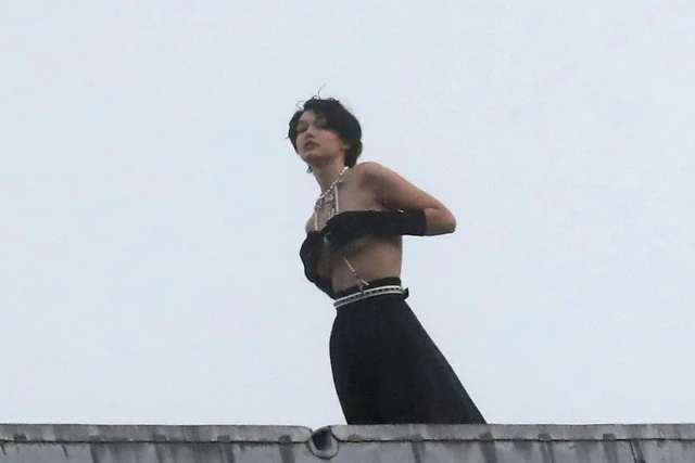 A Chanel legkedvesebb párizsi helyszínén, a Grand Palais tetején fotózták Gigi Hadidot, aki ráadásul szinte teljesen felismerhetetlen volt, hiszen rövid fekete hajjal pózolt a fotósoknak. Mellesleg a modell aztán jól bírja a megpróbáltatásokat, mert így december elején Párizsban sem lehet túl meleg, ehhez képes Gigi egy ponton még a felsőjét is levette a tetőn, és ott álldogált egy szál ciciben a Grand Palais tetején.