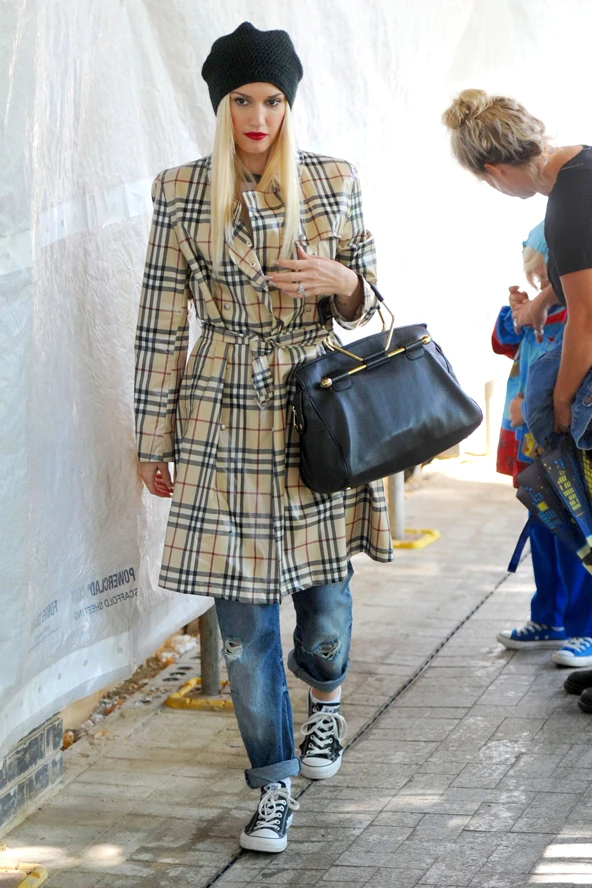 Gwen Stefani tegnap talán kissé túlöltözte az időjárást Londonban\ . A 43 éves énekesnő szakadt, feltűrt farmerben, Converse-ben, egy nagy Burberry trencskóban és sapkában indult útnak. Az összhatás kétségtelenül nagyon stílusos, főleg azzal a szuper táskával és Gwen Stefani védjegyének számító vörösre rúzsozott ajkaival.