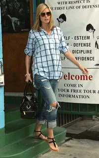 Dehogy! Csak gyerekeit kísérte el karateedzésre a terhes szupermodell, aki hamarosan megszüli negyedik gyermekét. Heidi Klum igazán laza anyuka, és meg kell, hogy mondjuk a 36 éves modell három szülés után, újra terhesen még mindig remekül néz ki. Heidi pontosan tudja, hogy mit kell felvenni, hogy gömbölyödő alakját slankítsa. Világos, kockás inghez, szakadt farmer, hiába a