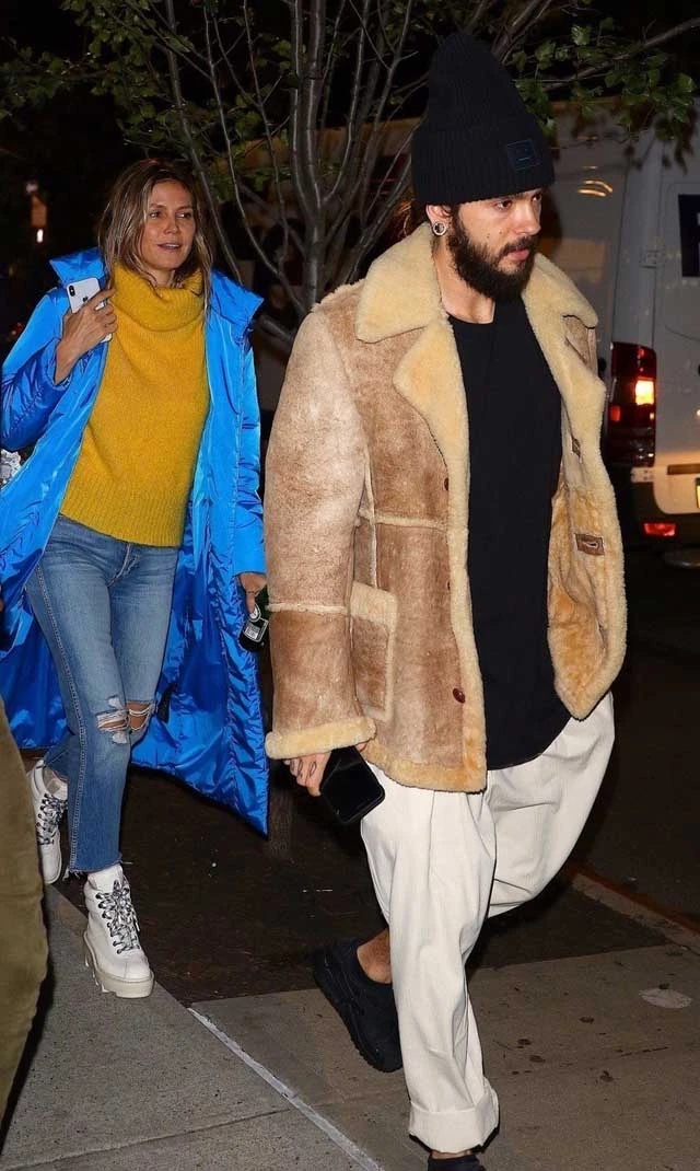 A 45 éves America`s Got Talent zsűritag smink nélkül, egy tökéletes szettben indult el a reptérre. Egy sárga garbót viselt és egy kék földig érő kabátot farmerral és egy fehér sportcipővel. Tom Kaulitz szintén nagyon trendi volt: ő egy barna kabátot vett fel bézs bő nadrággal, fekete pólóval és cipővel.
