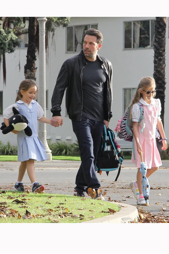 Korábban láttuk már egy cuki apa-fia napon, amikor kisfiával, a kétéves irtó cuki Samuellel töltöttek együtt pár értékes órát két forgatás között. Most pedig azt lesheted meg, ahogy Ben Affleck lányait, a 9 éves Violet Anne-t és az 5 éves Serát viszi suliba. Hát mennyire aranyosak az édes kis egyenruhájukban! Sajnos ennek a meghitt családi pillanatnak a láttán csak még jobban beleszeretünk Ben Affleckbe, mondd, hogy te nem! És nem mellesleg látod azokat az izmokat?