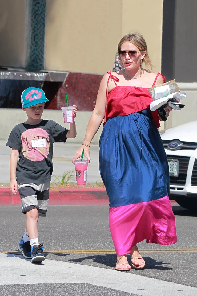 Az elmúlt napokban-hetekben lépten nyomon lencsevégre kapják a kerekedő pocakos sztárt, amint éppen kisfiával sétálnak Los Angelesben. Most is ez történt, és ez alkalommal is mutatott Hilary Duff egy remek kismamaruhát.