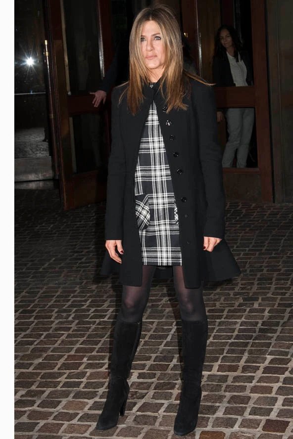 A 45 éves színésznő Cake című mozijáról, mely csak 2015-ben kerül bemutatásra, azt rebesgetik, hogy talán meghozhatja a Jóbarátok sztárjának a várva várt Oscar jelölést. A filmnek egy zártkörű vetítésén vett részt Jennifer Aniston New Yorkban. Mikor elhagyta a helyszínt, csupa mosollyal az arcán még pózolt párat a fotósoknak. Természetesen most is feketében láthattuk, de ez a fekete-fehér skótkockás ruha, amit kabátja alatt viselt, remekül állt neki, és egy kis játékosságot vitt az amúgy monokróm szettbe. Mit szólsz Jennifer Aniston legújabb összeállításához?