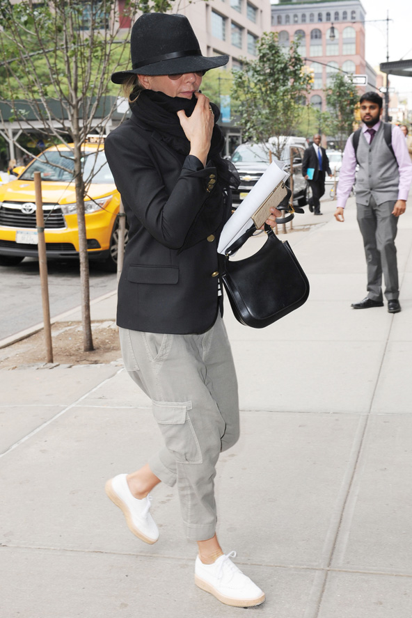 Igaz, ki szereti, ha fotósok hada üldözi? Márpedig Jennifer Aniston amúgy is kedvelt célpontja a lesifotósoknak, hát még mióta azt pletykálják, hogy várandós. Hiába azonban a szemig lehúzott kalap, és a sál, azért még így is könnyedén kiszúrható. Egyébként nagyon vagány ez a hip-hoposan bő nadrág a zakóval kombinálva, nem?