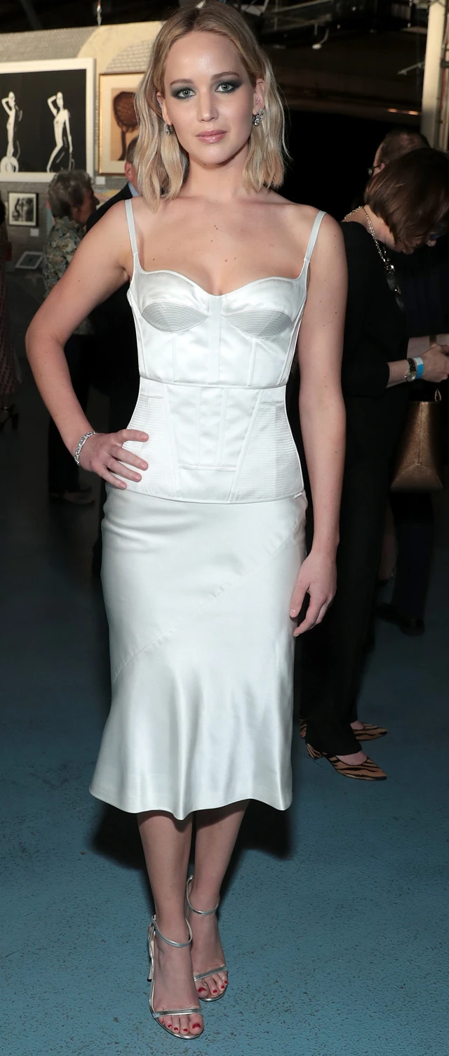 A színésznő egy testhez simuló, fehérneműre emlékeztető, selyem ruhát viselt, amiben elképesztően szexi volt.