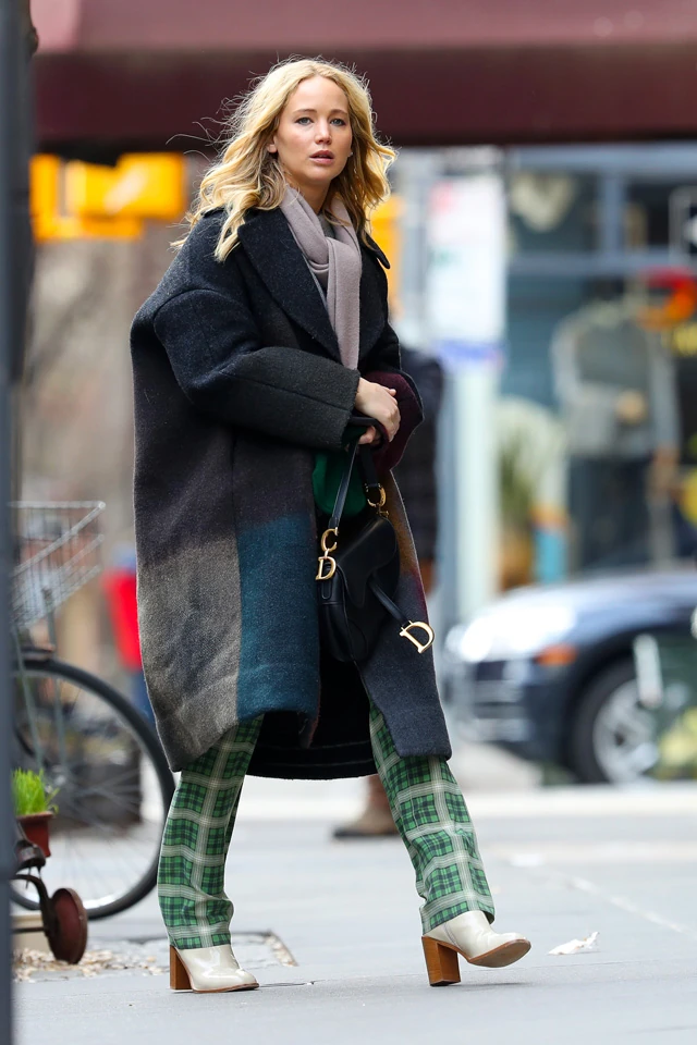Jennifer Lawrence szőke fürtjei ismét igazán hosszúra megnőttek, és a laza hollywoodi hullámokkal a hajában olyan volt J-Law, mint egy istennő, nem beszélve a szuper szettjéről, amit kiengedett loknijaihoz viselt. A fiatal színésznő egy túlméretezett, kockás szövetkabátot viselt szintén kockás nadrággal és magas sarkú, fehér csizmával, amiről most tudjuk, hogy rendkívül menő.