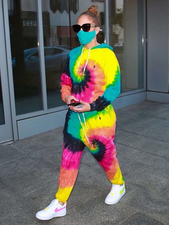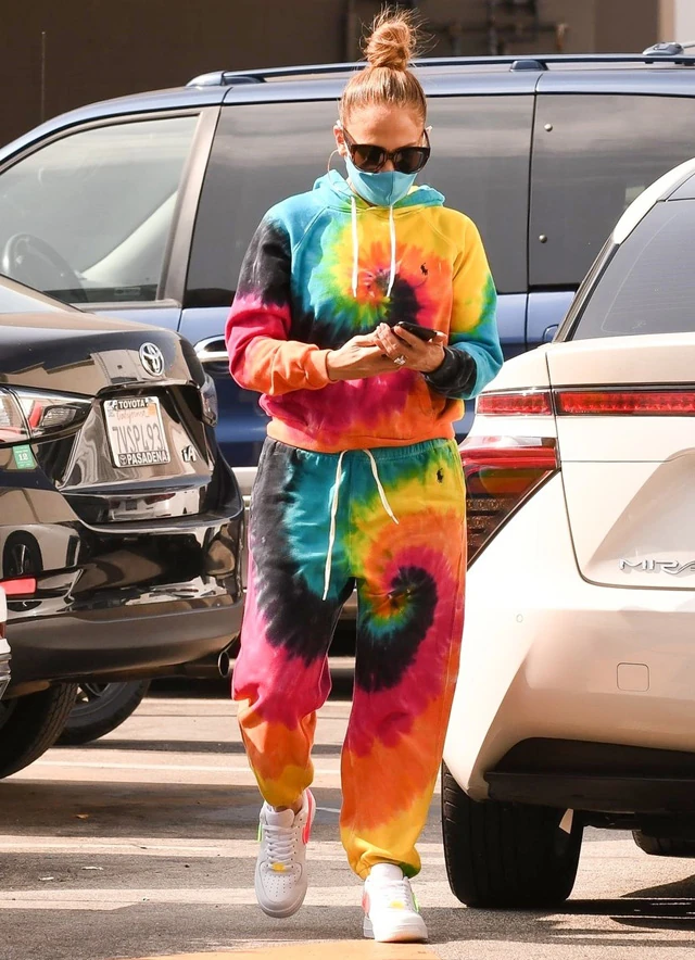 JLo teljes batikolt melegítőjében azonban annyira laza, hogy még az is kedvet kap ehhez a trendhez, aki amúgy fanyalogva nézte az újbóli térhódítását.