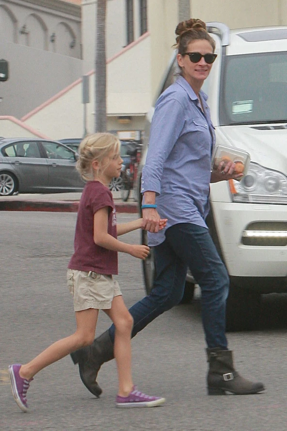 A bájos színésznőnek biztosan nem a vörös szőnyeges parádézás a legkedvesebb tevékenysége, de nem is ezért szeretjük. Az idén 45 éves sztárt már láttuk a Lancome hirdetésében, ahol a legjobb formáját hozta. Nos, most gyermekével igyekezett valahova, amikor lesifotósok lefényképezték Los Angelesben. Láthatjuk, hogy Julia Roberts nemcsak stúdiókörülmények között csodás. A szerelése nagyon vagány, és komolyabb smink nélkül is roppant üde. Egy biztos, mi Julia utcai stílusát sokkal jobban kedveljük, mint a vörös szőnyegest, te mit gondolsz a megjelenéséről?
