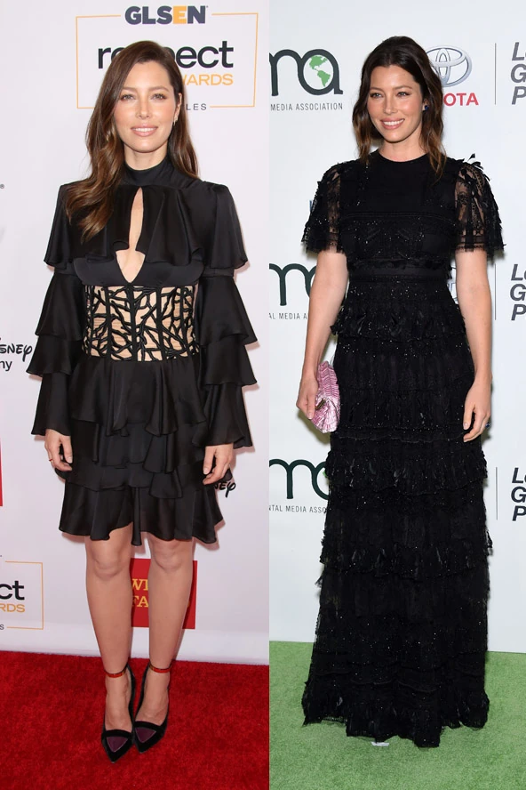 Ebből két alkalommal férje, Justin Timberlake társaságában láthattuk, először egy divatpartin vonultak fel, majd közös díjat vettek át az LGBT közösségért tett tevékenységükért. Ezúttal Jessica Biel egy fekete, fodros Balmain ruhában mutatkozott, majd folytatta a fekete vonalat, és egy gyönyörű, hosszú Valentino kreációban lépkedett végig a vörös szőnyegen az EMA gálán. Neked Jessica Biel melyik összeállítása tetszik jobban?