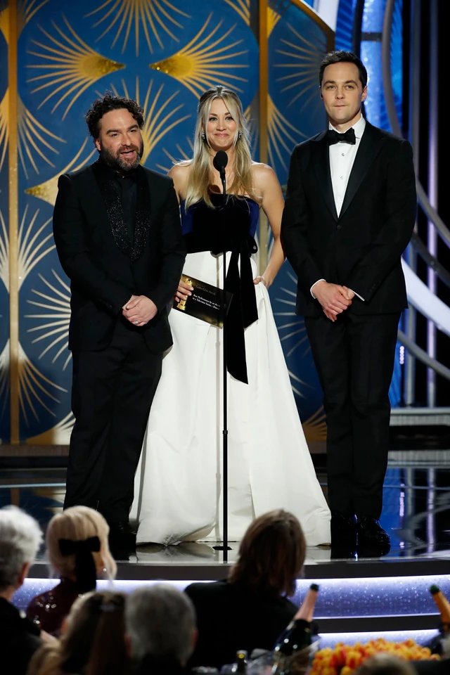 A 2019-es Golden Globe gálán hosszú kihagyás után a sorozatsztár végre visszatért a vörös szőnyegre, és a szépséges Cuoco nem is aprózta el a nagy visszatérést. Egy igazán elegáns Monique Lhuillier ruhában jelent meg a díjátadón, hogy a gála során Agymenős kollégáival a színpadon is megforduljon.
