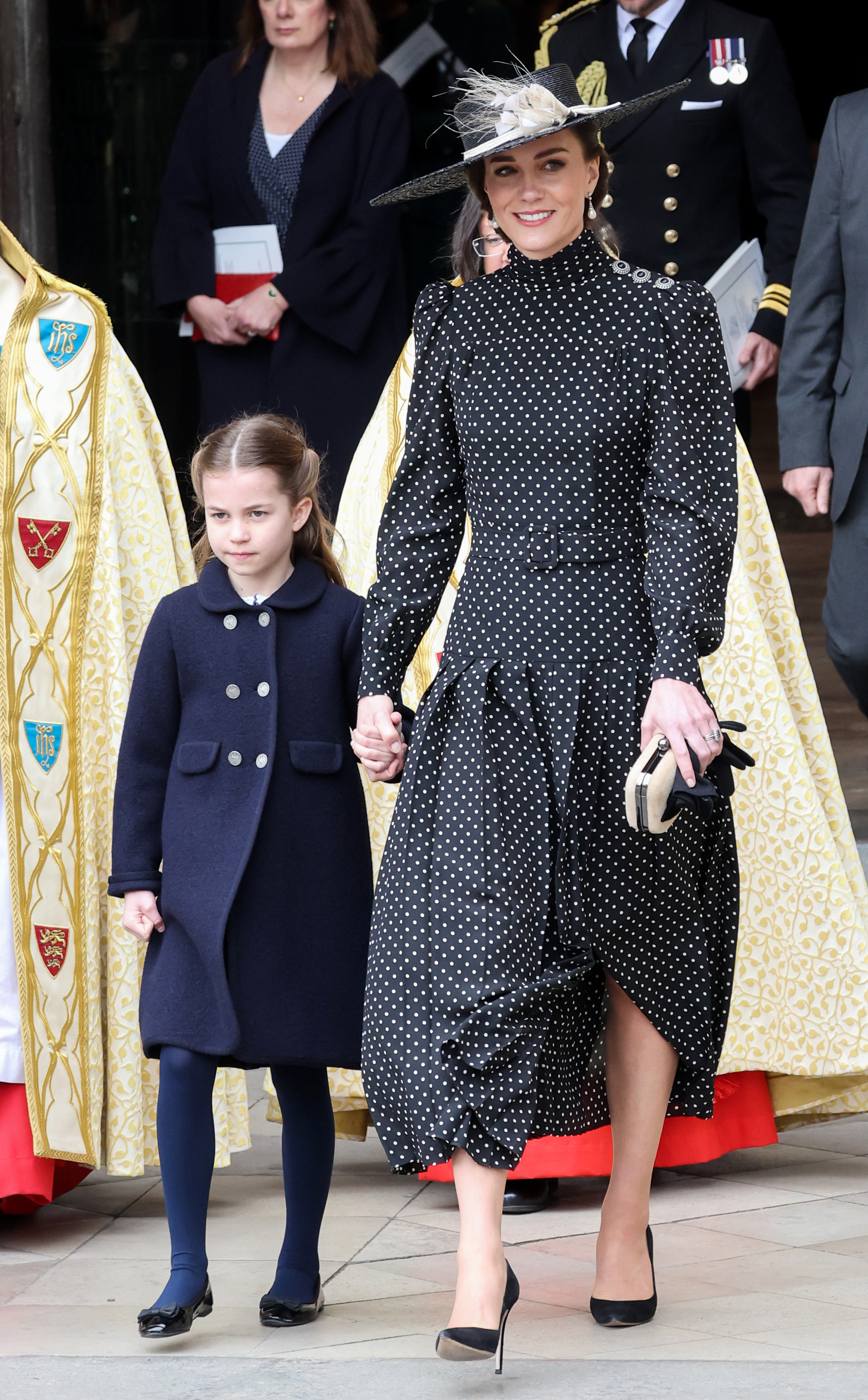 Kate Middleton eddigi legpazarabb és legstílusosabb körútján van túl, de úgy tűnik, hogy lendülete nem fulladt ki, első nyilvános hazai szereplése is roppant sikkesre sikeredett, a Westminster Apátságban tartott megemlékezésre egy fekete alapon apró fehér pöttyös Alessandra Rich ruhában érkezett és hozzá egy pazar fehér tollal díszített, fekete Lock & Co kalappal.