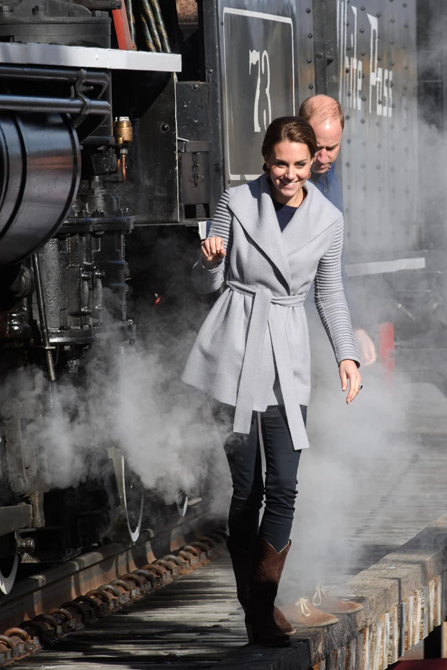A hercegné a kanadai Sentaler szürke kabátjában, farmerben és barna cowboy csizmában látogatta meg az aranyláz Carcross városát. Itt hegyi biciklizőket néztek Vilmossal, és azt a hirtelen döntést hozták, hogy végigmásztak egy gőzmozdony mellett, mely a White Pass átkelő hídján állt.
