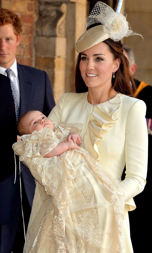 György herceg keresztelőjén még meglepetésként érte az embereket, amikor a tervező darabját viselte, ekkor még világossárga színben.