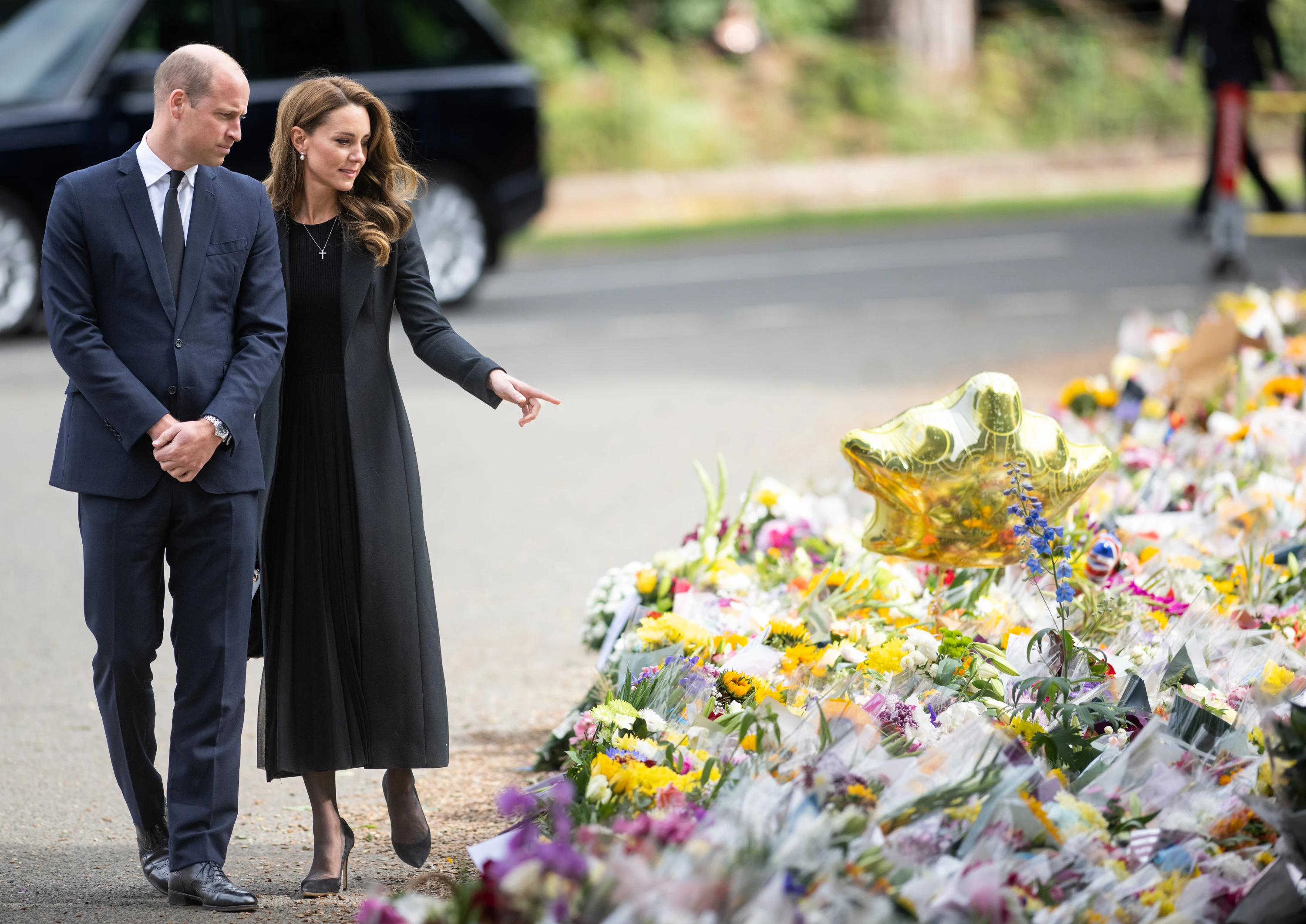 Manchesterbe és Glasgow-ba is ellátogattak az utóbbi napokban a királyi család tagjai, a wales-i hercegi pár, Vimos és Katalin pedig Sandrighambe mentek. A herceg sötétkék öltönyben és fekete nyakkendőben vette szemügyre a rengeteg kedves üzenetet, virágcsokrot, amit a királynő emlékére elhelyeztek az emberek. Katalin pedig elegáns fekete összeállításban, pliszírozott ruhában, fekete kabátban, kereszttel a nyakában kísérte férjét a virágtenger mellett.