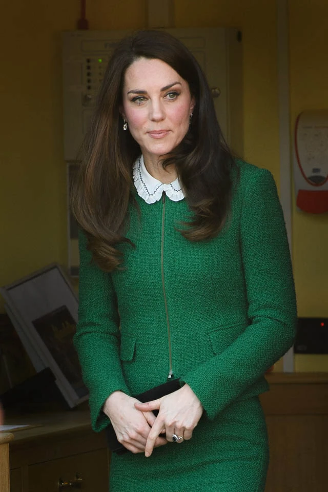 A fűzöld tweed összeállítás, amiben a norfolki gyermekhospice-t látogatta meg egyszerre volt elegáns, trendi és játékos. A kis fehér gallérnak köszönhetően a hercegné megjelenése egyszerre nagyon Lolitás lett. Neked hogy tetszik ez az iskoláslány stílus?