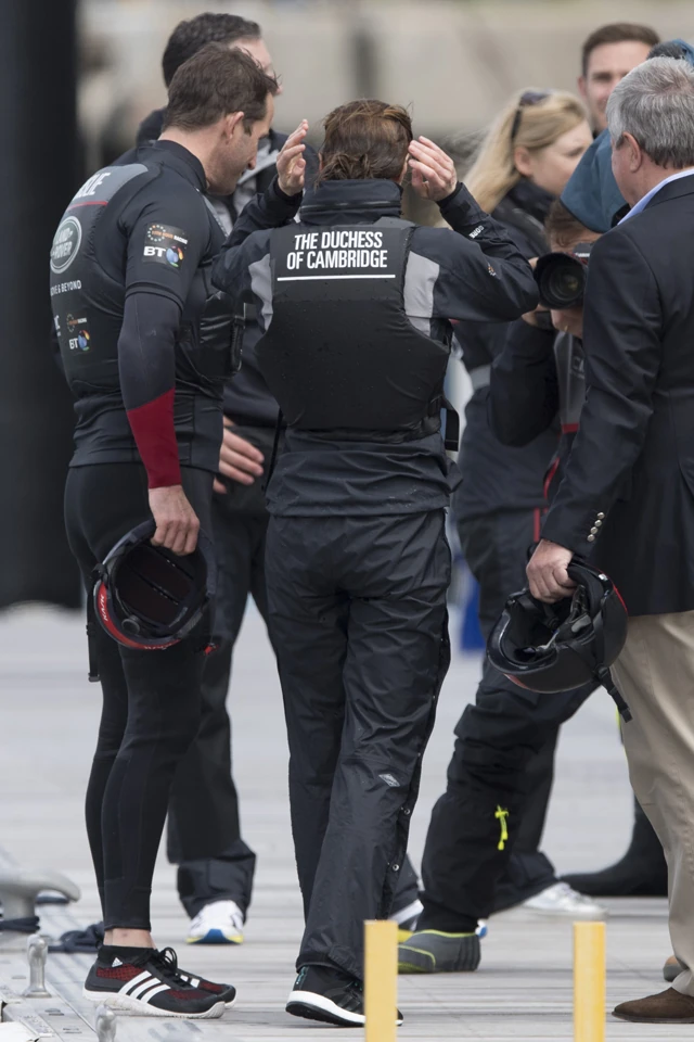 Cambridge hercegnéje még a fekete, vízálló mentőmellényt is sikkessé teszi puszta elegáns kisugárzásával.