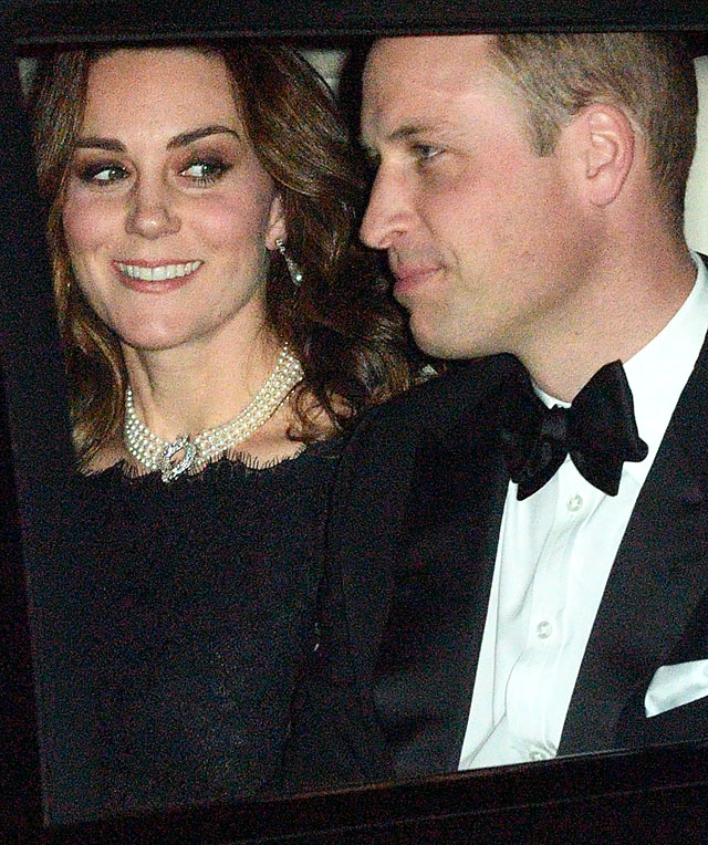 Katalin hercegné, aki híres tappintatosságáról, a királynő örömére kedvenc gyöngynyakékét viselte fekete csipkeruhája fölött. Nem ez az első alkalom, hogy egy-egy ékszerrel tisztelgett a királyi udvar előkelőségei előtt a hercegné, Diana hercegnő kedvenc tiaráját is viselte már ugyanilyan megfontolásból.