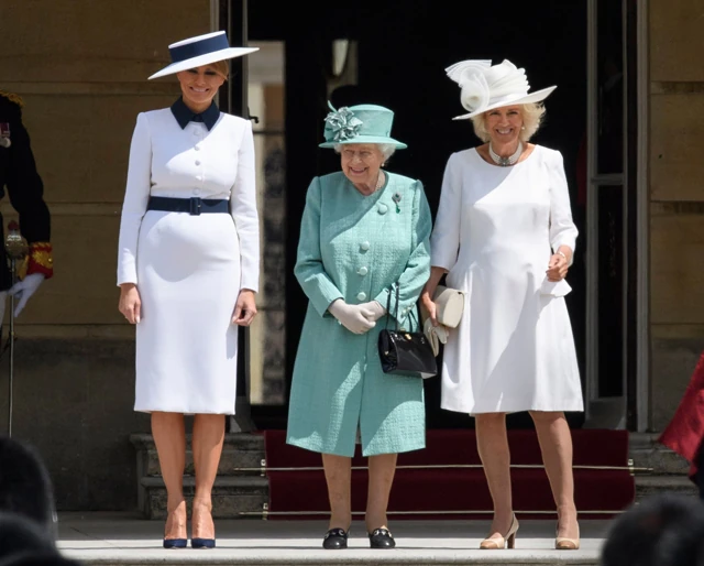 Az amerikai elnöki küldöttséget természetesen egy hivatalos bankettel egybekötött díszvacsorával is fogadta Erzsébet királynő a Buckingham Palotában. Nem ez az első alkalom, hogy Trump találkozik az angol uralkodóval, igaz, előző találkozásuk kisebb botrányba torkollott, amikor az elnök keresztezte a királynő útját – ezt szigorúan tiltja az etikett.