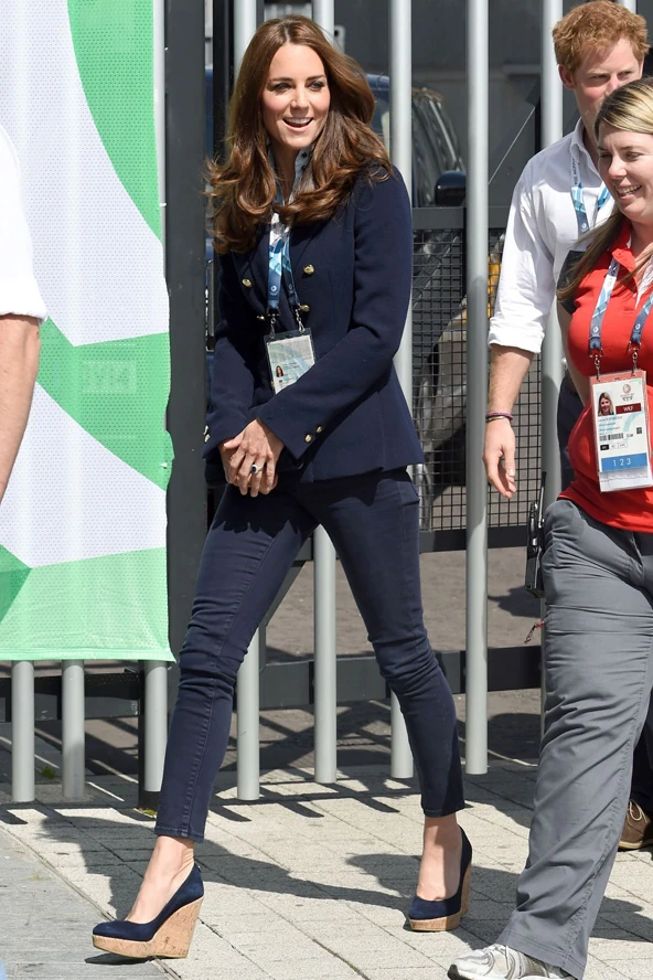 Azzal nem lehet vádolni a hercegnét, hogy fel akarná rúgni a szabályokat. Újabban tartja magát a pletyka, hogy már a kis György herceg testvére is ott mocorog Kate hasában. Egyelőre nem tudjuk eldönteni, vajon hihetünk-e a hírnek. Az mindenesetre biztos, hogy most férjével, Vilmossal és Harry herceggel Glasgow-ba érkeztek, hogy a nemzetközösségi játékokon nézőként részt vegyen. Már korábban is láthattuk, hogy amint az előírás megengedi, egyből inkább nadrágos szettekre vált, így nem lepő, hogy most is így tett. Szerinted mi áll jobban Kate Middletonnak a ruhák, vagy az ilyen lezserebb szettek?