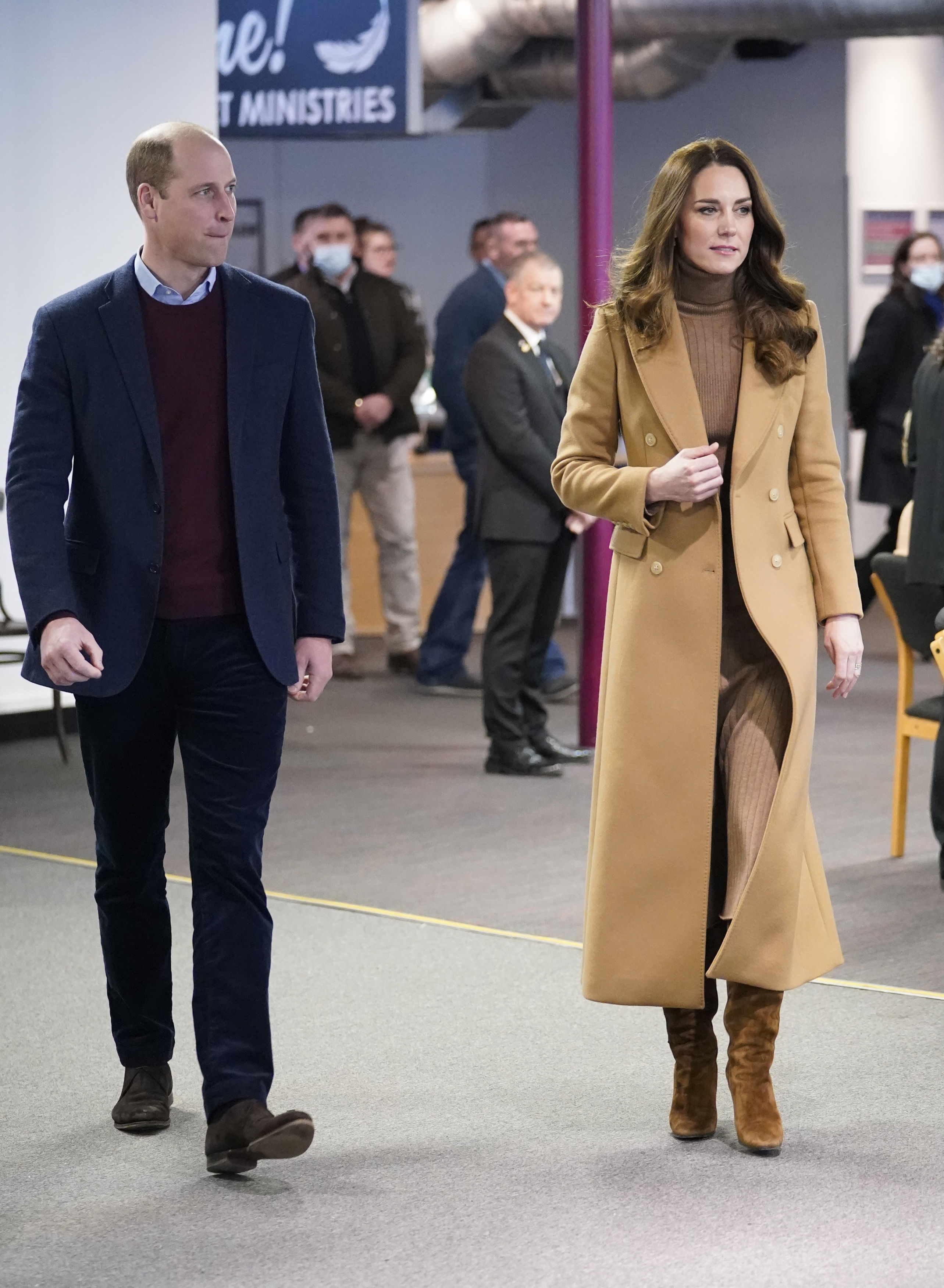 Katalin hercegné és Vilmos herceg ilyen problémákkal küzdő páciensekkel találkoztak Lancashire-ben, és erre az alkalomra Kate elővette az egyik legsikkesebb kabátját, azt a bizonyos teveszőrszínű Massimo Dutti darabot, amit már korábban is láthattunk rajta. A hosszú szövetkabáthoz világosbarna kötött garbós pulcsit és hozzá passzoló hosszú kötött szoknyát viselt, mindkettő Reiss márkájú, a szettet pedig barna hasított bőr csizmával egészítette ki.