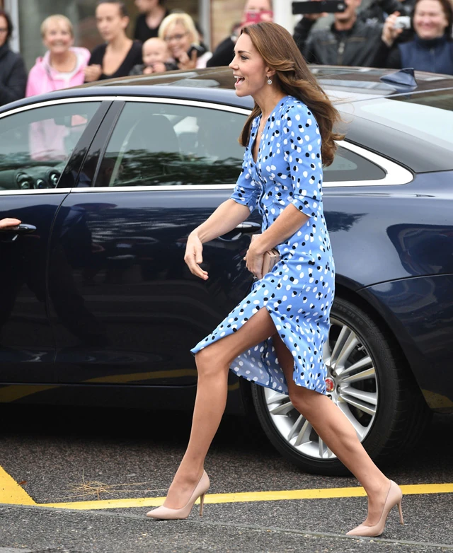 Kate Middleton nagyon megijedt, Vilmos viszont igazi úr volt a gáton, és rögtön az idős előkelőség segítségére sietett. Szerencsére az úrnak semmi baja nem lett, így aztán a pár látogatása zavartalanul folytatódott. A hercegné most is nagyon csinos volt, ez a pöttyös ruha igazán vidám darab.