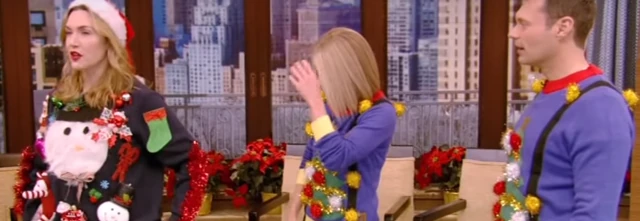 Kate Winslet új filmjét a Wonder Wheel-t népszerűsítette tegnap a Live! with Kelly & Ryan műsorban, amikor úgy gondolta, hogy megmutatja saját csúnya pulcsiját, ami minden fanatikus pulcsi gyűjtő álma lehet.