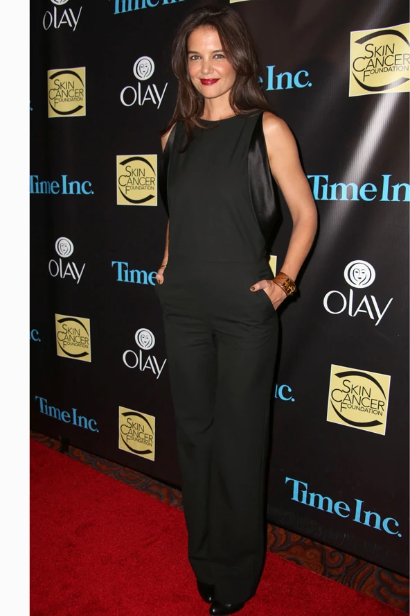 Míg az utcán inkább a farmeres szettek és a földszínek kedvelője, addig a hivatalos eseményekre a 35 éves színésznő inkább fekete összeállításokat választ. Ugyanígy tett, amikor a Bőrrák Alapítvány gáláján vett részt New Yorkban. Az Olay új és egyben első szépségnagyköveteként természetesen ez egy kihagyhatatlan esemény volt számára, és nem is okozott csalódást. Katie Holmes a fekete selyemoverallhoz arany kiegészítőket és sötétvörös rúzst választott. Ugye, csodás?