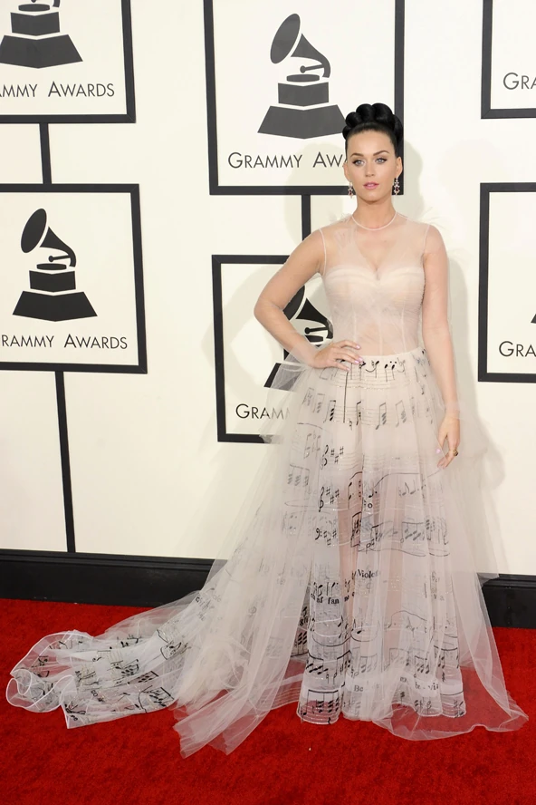 A mai Grammy gálás beszámolónkat Katy Perryvel indítjuk, aki egy gyönyörű, habos Valentino tüllruhában érkezett az eseményre. Hiszen ez egy zenei díjátadó, a 29 éves sztár remekül választott, amikor a kottával díszített kreáció mellett döntött. Szerinted is csodás Katy Perry ebben a ruhakölteményben?