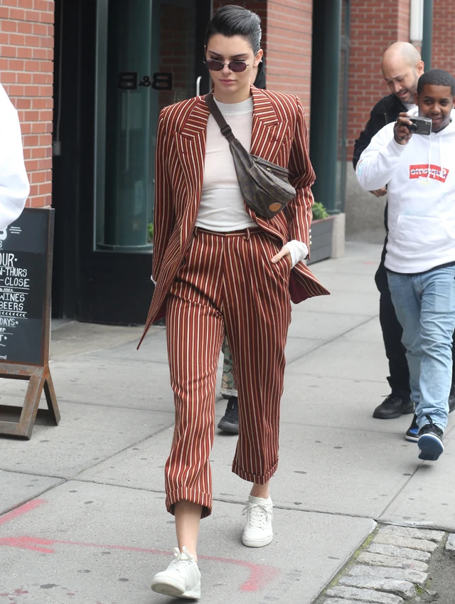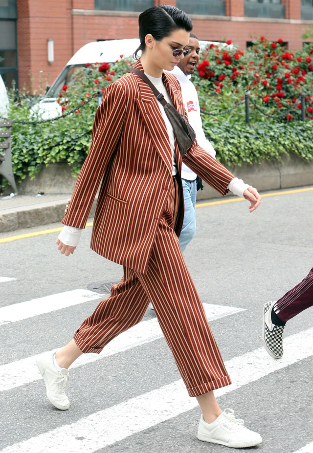 A sztármodell mostani szerelése már csak ezért is meglepő, hiszen egy 1 négyzetcenti villantás annyi volt a megjelenésébe, de még ennél is meglepőbb volt, hogy teljesen fiúsra vette a megjelenését. A dandy-külső amennyire meglepő, annyira telitalálatnak bizonyul.