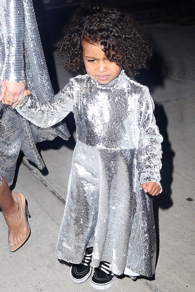 Kim és North New Yorkot úgy akarják meghódítani, hogy csillogó diszkógömbnek öltöznek. Első ránézésre elég nevetségesen festenek így együtt, sőt még azt is látni lehet, hogy North nem élvezi annyira a vakuk villanását, miközben anyukájával sétál, mégis annyira cuki ebben az ezüst, flitteres szerelésben.