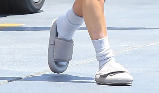 Ez a felfújható matracra emlékeztető papucs és fehér zokni nagyon nem volt jó választás....