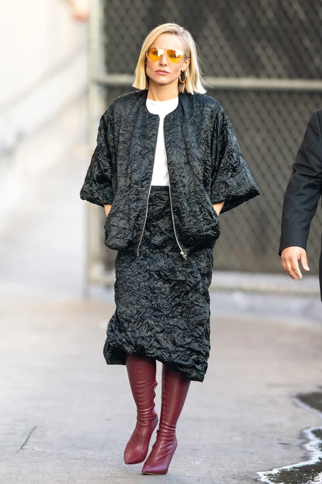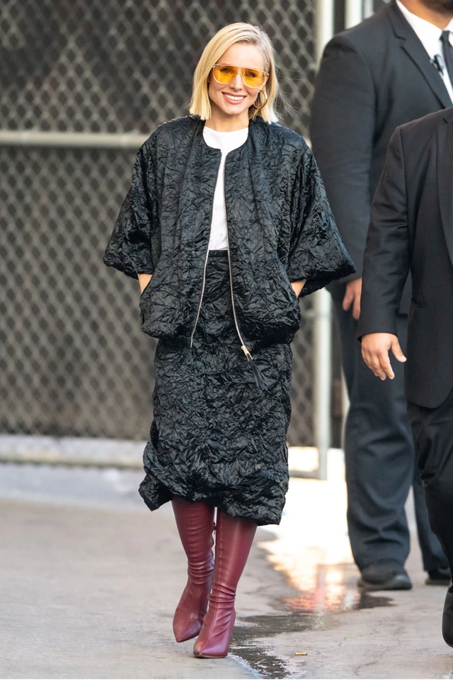 Kristen Bell időről időre bebizonyítja, hogy mennyire jó érzéke van a trendekhez, a tone on tone, a color blocking trendeket is a lehető legjobban viseli, és most egy új, izgalmas stílust vonultatott fel magán a napokban, amikor Jimmy Kimmel műsorának a forgatására igyekezett.