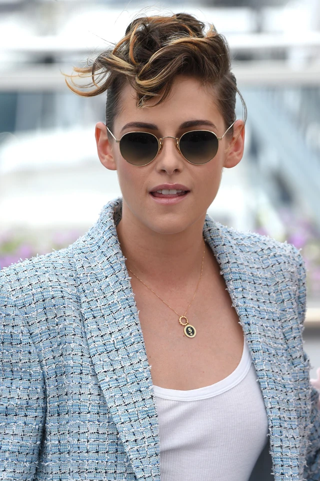 Stewart természetesen egy sikkes, nyári Chanel tweed nadrágkosztümben pózolt a kameráknak, rövid hajába pedig egy szexi hullámot is kapott, ha már tengerpart…