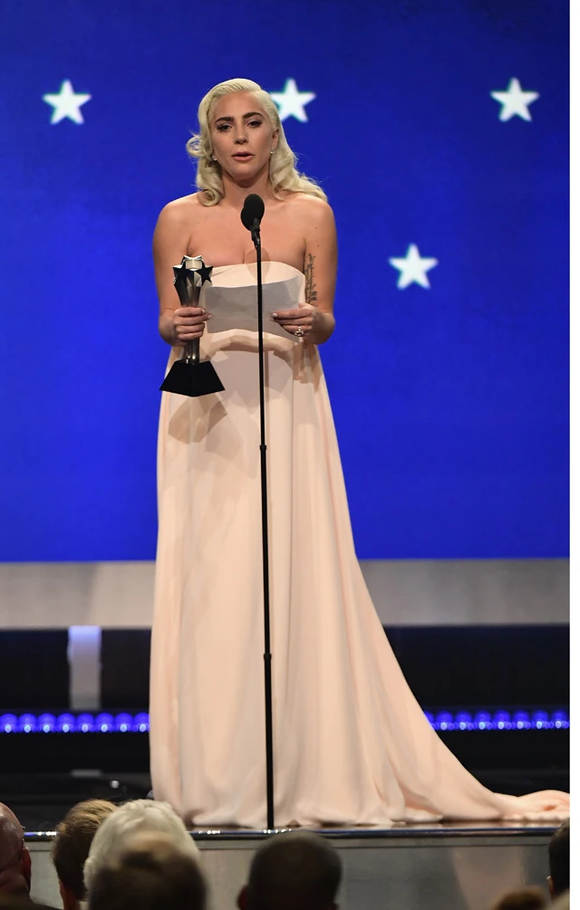 Lady Gaga egy nagyon egyszerű törtfehér Calvin Klein By Appointment ruhát vett fel a tegnapi Critics` Choice Awards-ra, ahol a legjobb színésznőnek járó díjat is bezsebelhette a Csillag Születikben nyújtott alakításáért. Az 32 éves szupersztár egy Giuseppe Zanotti lábbelit viselt, és Djula fülbevalót hordott.