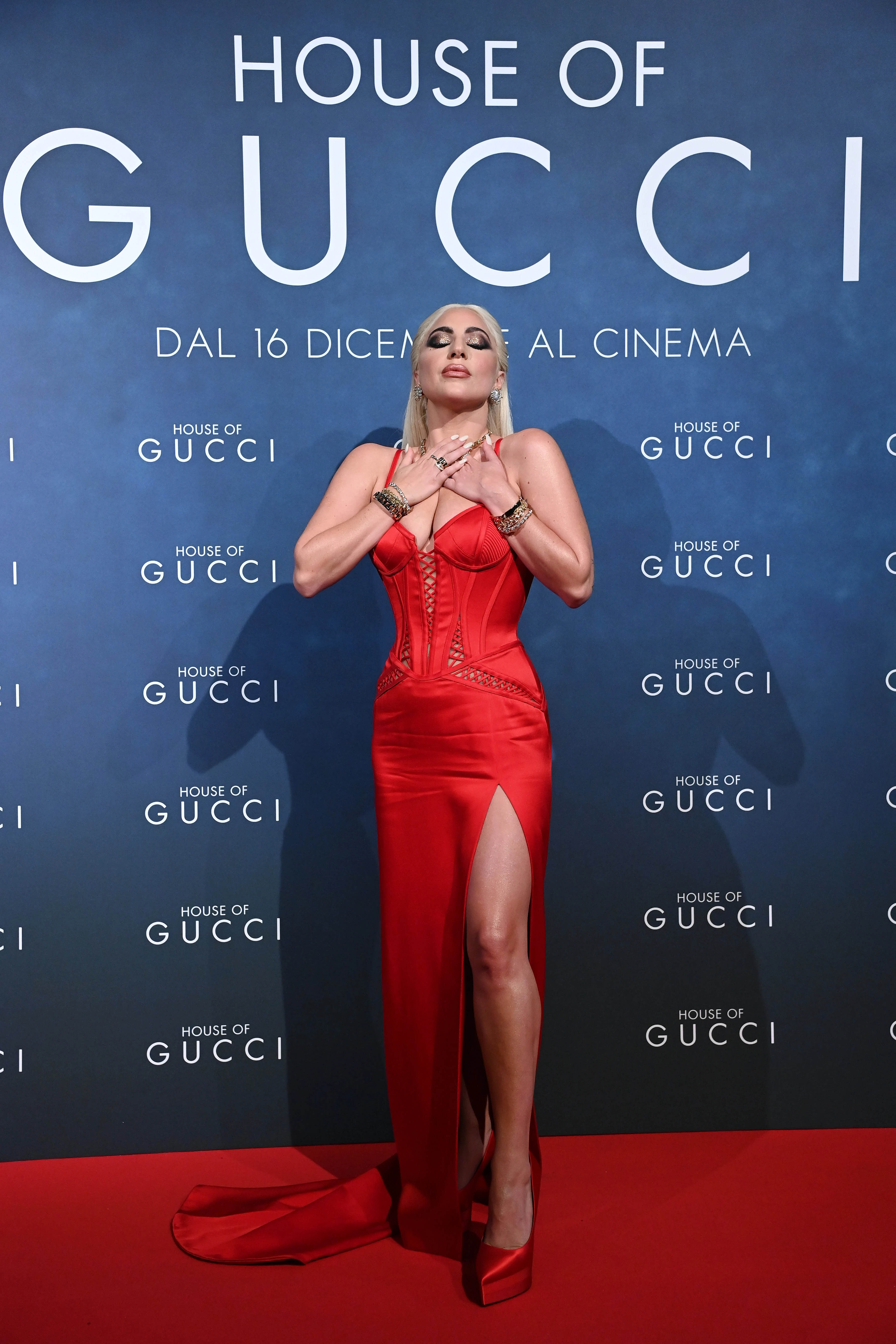 Lady Gaga felrobbantotta a vörös szőnyeget ebben a ruhában A Gucci-ház premierjén
