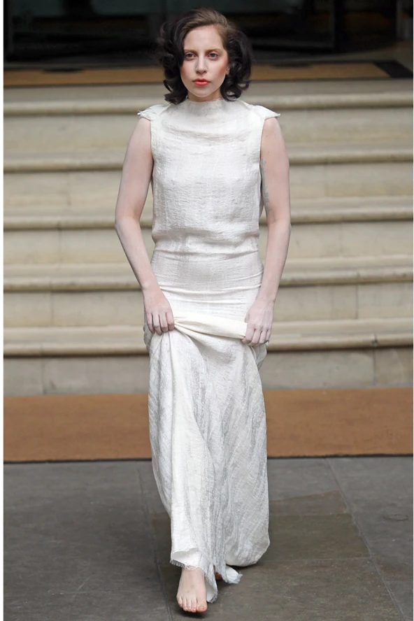 Lady Gaga hófehérben, mezítláb