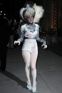 Úgy tűnik, Lady Gaga idén kihagyta a Halloween-napi beöltözést, ezért két nap múlva a ACE díjátadóján pótolta a jelmezt. A Stylemaker elnevezésű díjat vehette át a popsztár, nem is akárkitől, hiszen Marc Jacobs volt a díjátadó! Lady Gaga egy igen különös szettel próbálta bizonyítani, hogy kiérdemelte az elismerés. Az ötvenes évek alsóneműit idéző plüss szettben érkezett, a melltartó alá viszont egy fiús szabású savfoltos fekete bársonyinget húzott, az egész szett egyébként Marc Jacobs kreációja. Az amúgy sem hétköznapi összeállítást egy, a teljes arcát beborító csipke hálóval koronázta meg. Nos, attól nem kellett tartani, hogy az estén Gaga túl sokat eszik, vagy iszik, hiszen ebben a szerelésben a táplálkozás lényegében lehetetlen. Te mit szólsz stílusformáló popsztár megjelenéséhez?