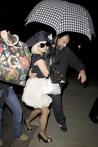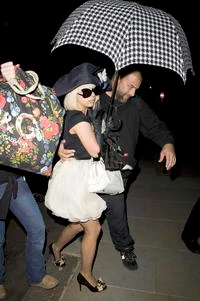 Az énekesnő mindent megtesz, hogy népszerűsítse lemezét Angliában. Nem fukarkodik az angol rajongók dicséretével, de kétségkívül elképesztő szereléseivel többet tesz azért, hogy a beszédtéma legyen. A kesztyűmániás sztár ezúttal extrém kalapjaival irányította magára a figyelmet. Első nap éppen Németországból tért vissza, s a repülőről leszállva egy Napóleon-kalapban illegette magát. A váratlan húzást az egész szettet benépesítő fekete-fehér lepkék még megdöbbentőbbé tették. A pillangókból jutott egyébként a fekete táskára, a felsőjére, sőt még a cipőjére is. A pepita esernyő pedig csak azért van az énekesnőnél, hogy a fekete-fehér szett még feltűnőbb legyen, hiszen az eső éppen nem esett az angol fővárosban. Te felvennél egy ilyen extrém kalapot az utcára?