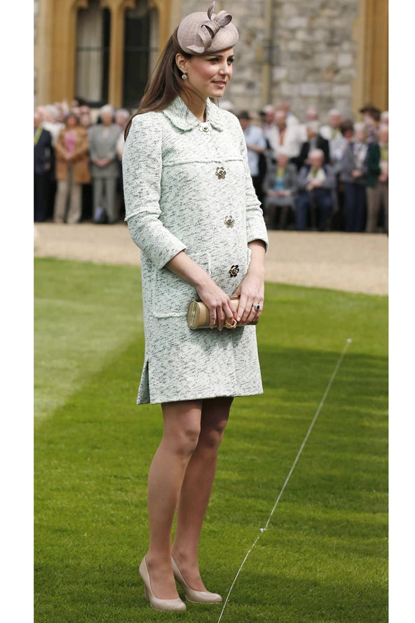 Alig egy hónapja, amikor a mostanihoz hasonlóan cserkészekkel találkozott, szinte alig volt látható jele terhességének. Egy hónap azonban nagy idő egy várandós kismama életében, most már a ruhája sem fedi el, hogy bizony gömbölyödik már Kate Middleton pocakja. A halványzöld Mulberry kabátruha csodásan áll a hercegnének, nektek hogy tetszik?