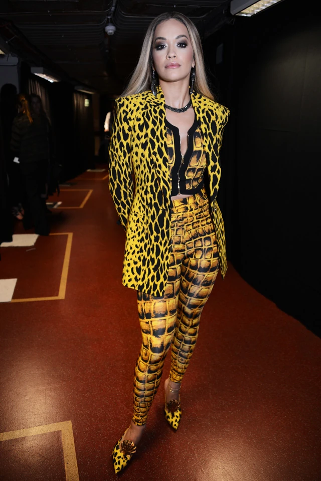 Az esti partin azonban már nem bírt magával a popsztár, és muszáj volt valami sokkal feltűnőbbet és megosztóbbat választania. Úgy tűnik, Rita újabban az állatminták és a Versace szerelmese: a bulira ismét az olasz tervezőtől választott, azonban most egy kígyómintás sárga-fekete darabot. Hogy a ruha jól néz-e ki, az vitatható, mindenesetre ha egy ember tényleg tudja viselni, az csakis Rita Ora lehet.
