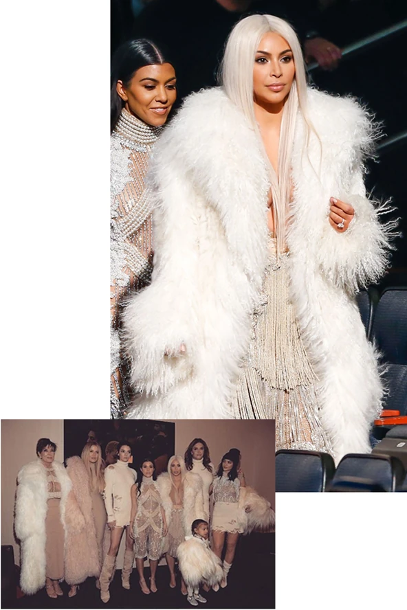 Amint azt gondolhattuk volna előre, a Kardashian-Jenner klán nagyon komolyan felkészült a belépőre a család legfontosabb férfijának nagy estéjén. Az első két Yeezy-Adidas kollekció bemutatóján a család, főként Kim, a kifutón látott darabok egyikébe bújt, most azonban más irányba mentek. Kimmy kebelbarátja, Olivier Rousteing mindössze 5 nap alatt készített Párizsban egy exkluzív Yeezy x Balmain kollekciót a hölgyek számára, amit Yeezus el is hozott nekik nagy örömmel, hogy már ezekben a hófehér, csillogó, ám a Yeezy márka stílusjegyeit magán hordozó kreációkban üljenek be a lelátóra szurkolni. A szakadt hókirálynős összeállítások nem lettek volna teljesek a hosszú, szőke parókák nélkül. Kim Kardashian jeges szőkéje kész őrület! Hogy tetszik?